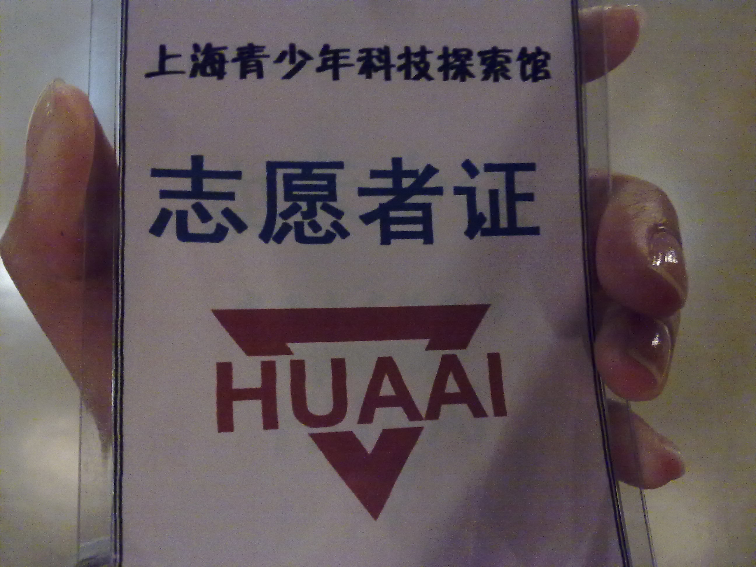 图片说明:上海青少年科技探索馆志愿者证件