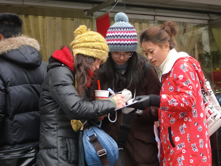 1月21日下午,来自开元集团网站学代会的同学们在福州路上海书城门口开展了以“环保创意大调查”为主题的问卷调查活动。本次活动旨在加深同学们的环保观念,同时宣传化废为宝、利用垃圾的环保生活方式。活动期间同学们还展示了用废旧材料自制的小礼物,包括用薯片盒做的储蓄罐、用冷饮棒做的小木屋等,既美观又极富创意。虽然正值寒冬,但同学们克服了天气、交通等因素,以饱满的热情投身到活动中。