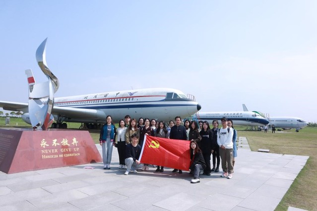 首先,师生一行在总装制造中心(上海飞机制造有限公司)工作人员带领下参观了中国首架自行总装的运十飞机,并在“永不放弃”纪念碑前举行了新发展党员入党宣誓仪式。然后,师生一行走进商飞数控智能生产线和ARJ21飞机总装厂房,详细了解了商飞在生产自动化和ARJ21量产飞机的装备过程。最后,大家参观了大飞机C919的总装厂房。在ARJ21、C919的总装厂房里,“长期奋斗、长期攻关、长期吃苦、长期奉献”十六个顶天大字述说着“大飞机精神”:“充分发挥新型举国体制优势,一以贯之善始善终久久为功,努力实现我国高端装备制造更多重大突破”,不辜负习近平总书记“办好大飞机事业”的殷切嘱托,持久拼搏、攻坚克难,为建设航空强国、制造强国作出新的贡献。