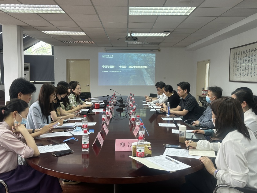 吴赟详细介绍了同济大学外语学科“十四五”时期的建设思路,分享了新时代新背景下外语学科未来发展的观点,介绍了学院在人才培养、学科建设等方面的举措。随后,双方以专题讨论的形式就党的建设、师资引育、专业建设、学生就业、科研等方面进行了深入交流和经验分享。