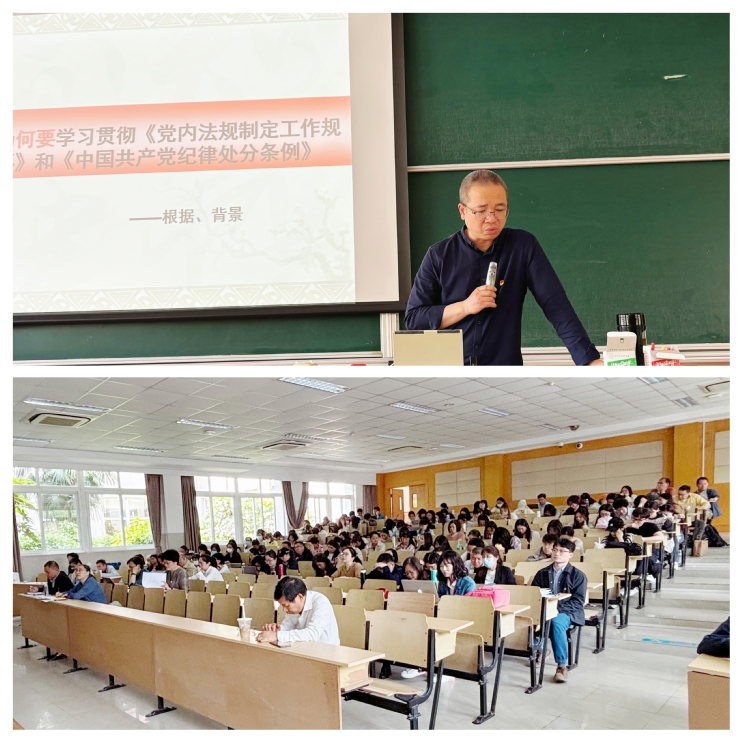 会议邀请了上海市教卫党委党的二十大百名专家宣讲团成员,马克思主义学院黄时进教授作题为“学习贯彻《党内法规制定工作纲要》一一兼析《中国共产党纪律处分条例》(2023年版)”的专题辅导报告。黄时进通过详实的典型案例逐一对《中国共产党纪律处分条例》的内容进行了诠释和解读。