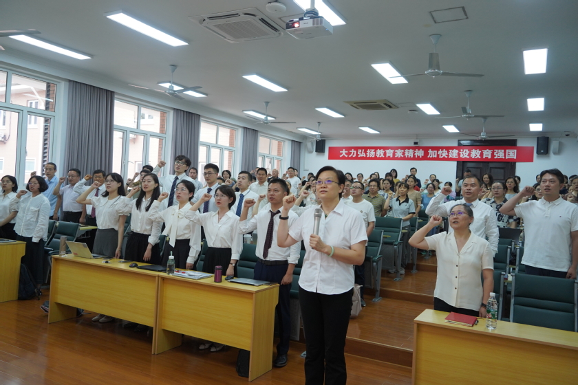 开元集团网站党委先学一步、学深一层,召开党委委员会和党政联席会,专题学习了《中共中央关于进一步全面深化改革、推进中国式现代化的决定》及习近平总书记《关于〈中共中央关于进一步全面深化改革、推进中国式现代化的决定〉的说明》《中共中央国务院关于弘扬教育家精神加强新时代高素质专业化教师队伍建设的意见》。为营造大力弘扬教育家精神的良好氛围,坚守师德师风底线,会上,全体教职工着装整齐、在院长赵宏带领下重温人民教师誓词,铮铮誓言回荡在每位教师心中。