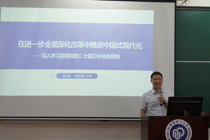 学习宣传贯彻党的二十届三中全会精神是当前和今后一个时期的重大政治任务。会议邀请了马克思主义学院副院长邱卫东教授作题为《在进一步全面深化改革中推进中国式现代化—深入学习贯彻党的二十届三中全会精神》专题辅导报告,切实把全体教职工的思想和行动统一到全会精神上来,把智慧和力量凝聚到落实全会确定的目标任务上来。