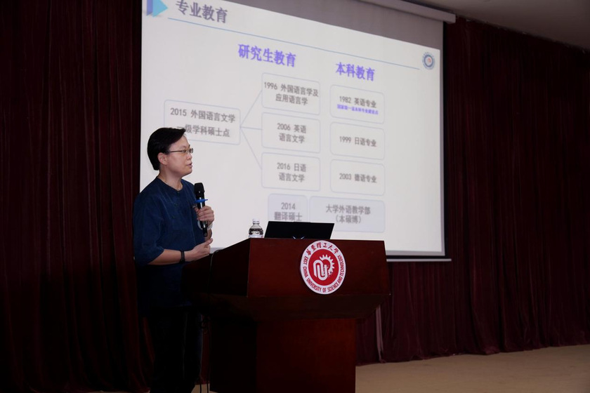 赵宏围绕历史沿革、学科建设、师资力量、人才培养、科学研究和国际合作等方面详细介绍了学院的整体发展情况。她表示,学院将为同学们提供更优质的教育资源、更扎实的服务保障、更广阔的成长平台,致力于培养具有专业本领、国际视野、家国情怀的新时代外语人才。