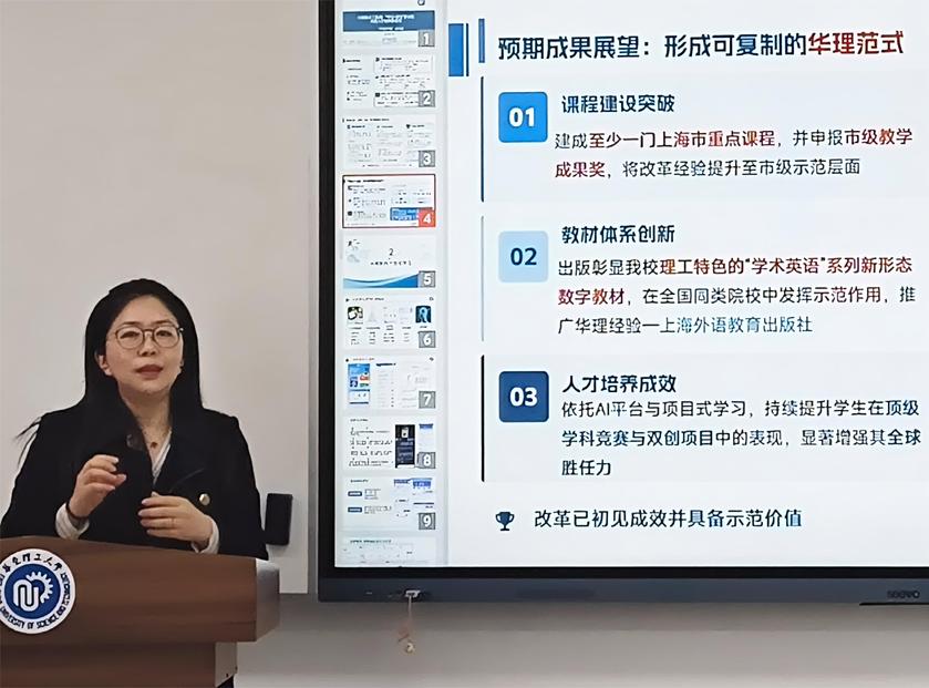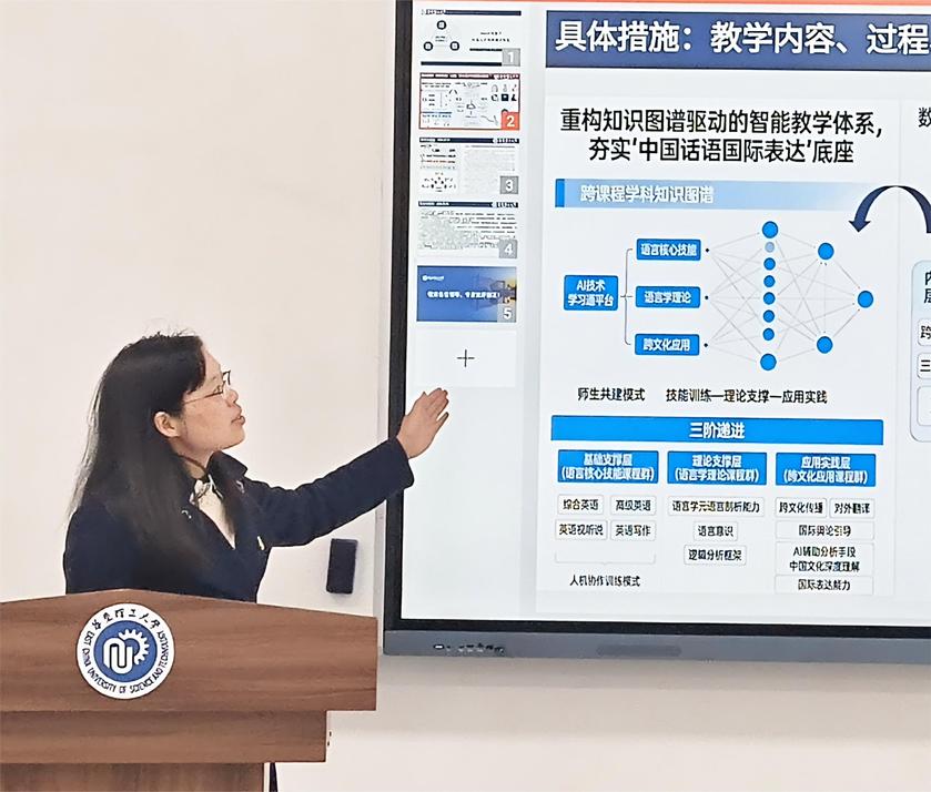在专题分享环节,幸君珺、封宗颖两位同志围绕“文工融通”卓越人才培养视域下的AI赋能外语教学模式重构与专业人才培养创新项目,系统阐述了跨学科课程设计理念与人工智能赋能教学改革的实践路径,为探索复合型外语人才培养新模式提供了有益思路。