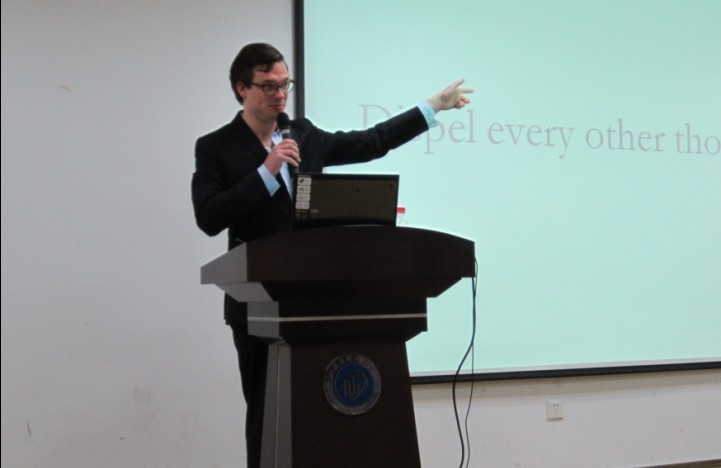 最后,颜静兰老师作了总结,她强烈建议同学们重视课外阅读,以扩大阅读量的方式增加词汇积累,取代单纯背单词的方法,以突破传统教育中偏重语音的现象,全面提高外语综合能力。Carter还表示,他十分乐意在有关方面与同学们交流,并给予帮助,希望为同学们搭建一个了解西方文化的平台。而同学们也纷纷表示,本次讲座不仅让他们反思了自身的学习心态,还了解到西方的阅读理念和学习方法,可谓获益匪浅。今后会适时调整自身的学习方法,更加注意培养自己的兴趣,在外语学习中投入热情,让“Reading for Fun”不仅仅停留在口号。