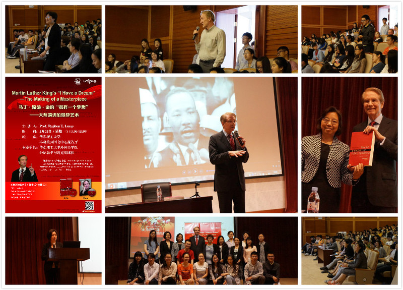 5月25日下午,奉贤校区图文信息中心报告厅座无虚席,大家聚精会神地聆听来自美国威斯康星大学传播艺术系教授斯蒂文·E.卢卡斯(Pro.Stephen E. Lucas)的题为“马丁·路德·金的我有一个梦想——大师演讲的修辞艺术”的精彩讲座。该讲座由开元集团网站主办,英语系主任杨慧敏主持,副院长颜静兰致欢迎辞。