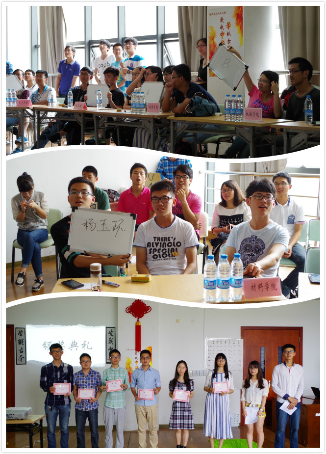 本次比赛共有来自全校9个学院的9支队伍参加,每支队伍由各学院的3位精英选手组成。比赛持续了近两个小时,分为博古通今、速记风暴、心灵手巧、妙谋神算四大环节。参赛选手知识广博,思维敏捷,踊跃抢答,现场气氛紧张而热烈。随着赛场局势不断变化,比赛始终扣人心弦。面对博大精深的中华传统文化知识宝藏,各队选手纷纷使出看家本领,充分发挥聪明才智,利用平日的知识储备,机智应答。最终,机动学院的选手凭借过硬的知识储备和超强的随机应变能力摘得桂冠,材料学院和生工学院分获亚军和季军。赛后,今年的冠军队伍机械与动力学院与去年的冠军队伍材料学院以“你画我猜”的形式进行了表演赛,高手之间的精彩对决高潮迭起,赢得了现场观众的阵阵喝彩。