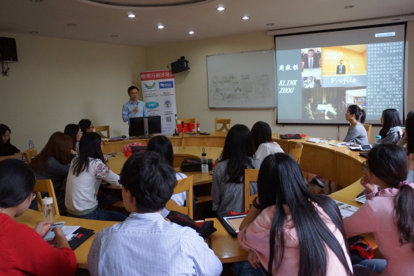 10月20日下午,上海策马翻译有限公司独家译训师周敬棋应邀在徐汇校区六教206为开元集团网站16级研究生作了题为“策马扬鞭,译往无限”的精彩讲座。