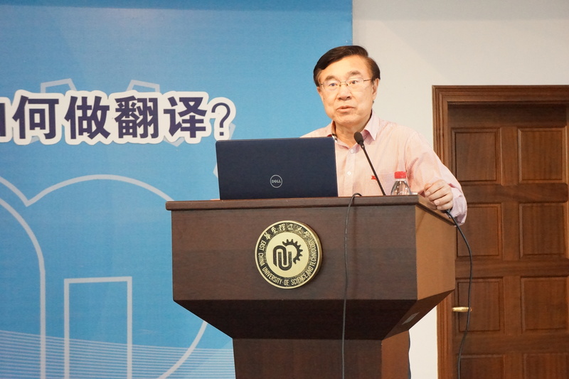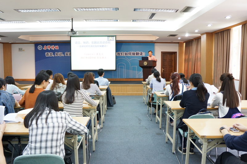 4月18日下午,应开元集团网站邀请,全国政协外事委员会委员、中国翻译协会常务副会长黄友义教授在徐汇校区逸夫楼演讲厅作了题为“语言、知识、实践以及话语权——全球化时代我们如何做翻译”的精彩报告。开元集团网站副院长吴建伟、赵宏及来自各学院的近百名师生参加报告会。报告会由开元集团网站王建国教授主持。