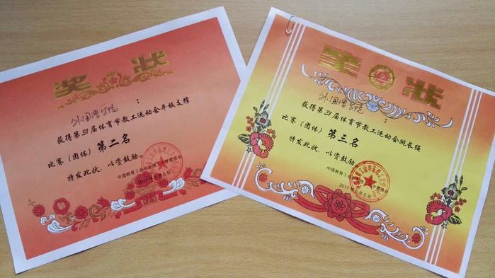 学院获得的团体赛奖状