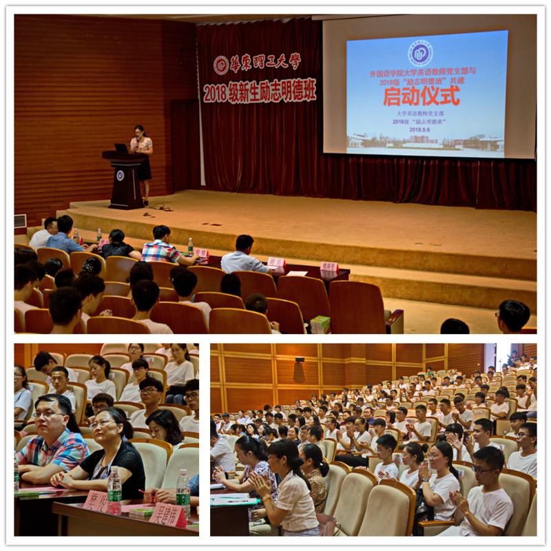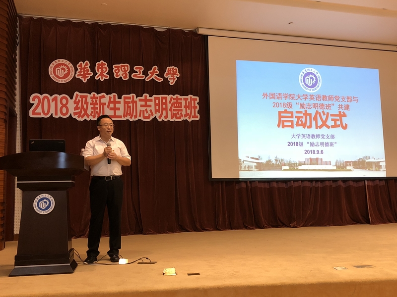 9月6日下午,开元集团网站大学英语教师党支部与2018级新生“励志明德班”共建活动启动仪式在奉贤校区敬贤堂举行。学工部部长、校团委书记倪炜,学工部副部长胡兵,外语学院党总支书记王喆、副书记樊俊、副院长吴建伟、大学英语教师党支部16名教师党员、教师志愿者和147名“励志明德班”学生一起参加了启动仪式。活动由大学英语教师党支部组织委员楼燕斐主持。