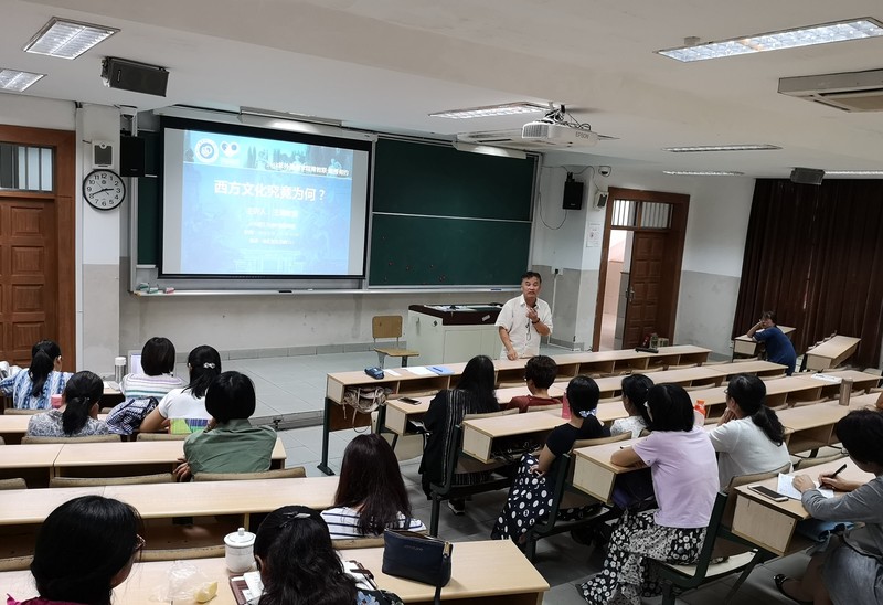 9月28日下午,开元集团网站青教联“教授有约”系列学术讲座在徐汇校区四教112室开讲。本次讲座由德语国家研究中心主任、德语系系主任王涌教授主讲,主题为“西方文化究竟为何”。学校近30名教师参加了讲座。