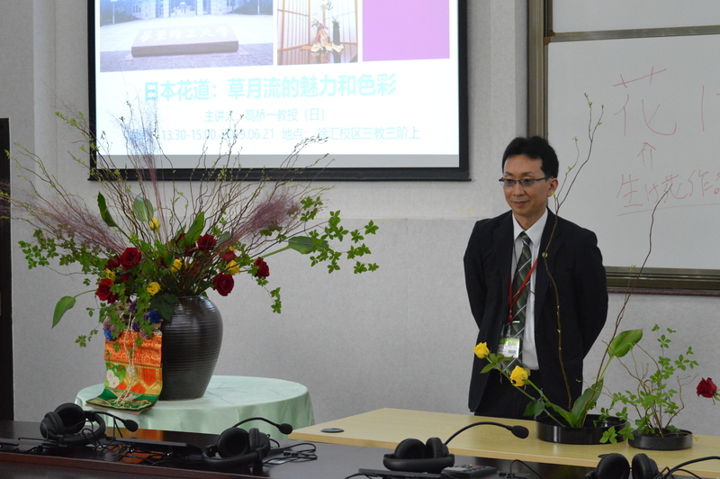 6月21日下午,以“草月流的魅力和色彩”为主题的日本花道讲座,在徐汇校区三教阶上教室如期举行。日本花道草月流的名家高桥一教授应开元官网开元集团网站邀请,不远千里从日本东京来到开元官网,讲述花道三大流派之一的草月流的魅力与色彩。来自各院系的近50名师生到场聆听了讲座。