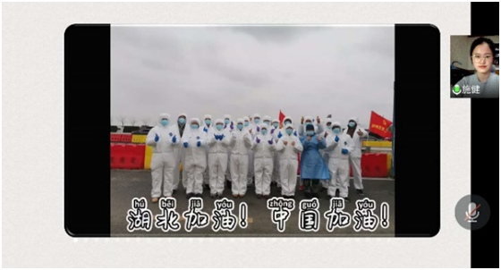 5月19日晚,外语学院组织开展了首场“战疫青年讲师团”云宣讲活动。特邀嘉宾校“战疫青年讲师团”成员施健,学院讲师团成员孙江、金沁怡、韩嘉桐在线讲述自身战“疫”故事,分享战“疫”经历。施健从自己“守护上海北大门女孩”的志愿服务故事出发,讲述了作为学生党员如何在疫情中贡献自己的青春力量。孙江以三年来700多小时的志愿服务为引,分享了在抗击肺炎疫情、进博会、支教、敬老助残等不同类型志愿服务中的收获和感悟。金沁怡以“不求回报,只问付出”的理念讲述了她在疫情期间参与社区志愿服务及“花梨梦”志愿家教的经历,传达了“不要想着通过志愿活动得到什么,而要想着能做些什么来服务社会、改变世界”的精神与信念。韩嘉桐从自己进入大学以来参与志愿服务的经验出发,分享了自己做志愿的经验和心得,介绍了不同规模志愿服务中的感受与成长。
