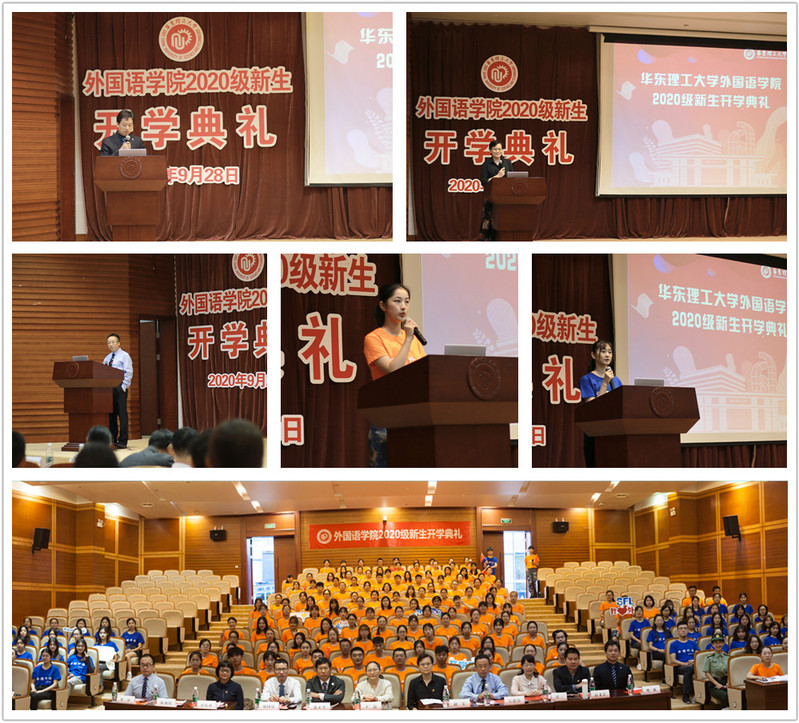 高年级学生代表、日语182班赵晨雨发言,建议学弟学妹们合理安排时间,把理想照进现实。本科新生代表、英语202班许芷涵在发言中表示,学习语言的学生们肩负着向世界诠释中国的使命,要用“勤奋求实,励志明德”的校训要求自己,勇担新时代青年的责任与担当。研究生新生代表刘梅煌回顾了自己的考研之路,并对今后的学习生活提出了期待:明确目标,自主创新,稳扎稳打,砥砺前行。