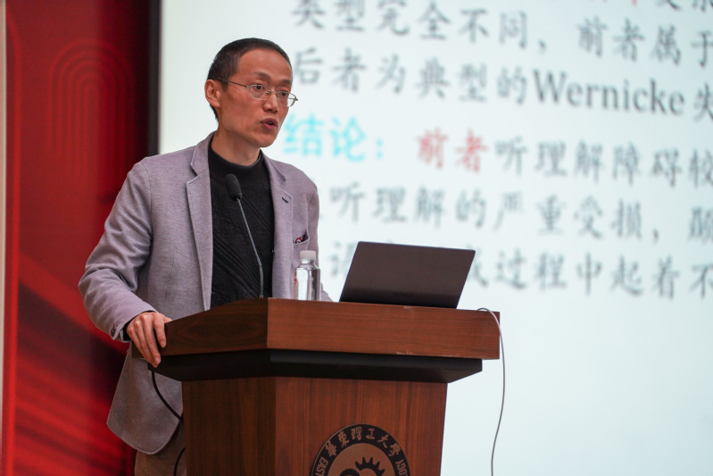 开元集团网站副院长韦晓保作了“认知神经科学视域下的语言研究”主旨报告。他指出了当前语言学研究的两个趋势,即在认知科学的大旗下,语言学作为一门介于人文科学和自然科学之间的交叉学科,其地位日益得到彰显,以及当前的认知语言学研究存在着一种关于人类语言认知属于“向外”还是“向内”的观点分野。他围绕语言的认知神经机制研究,就事件相关电位(ERP)及其分类等作了详细阐述,其研究的前沿性让与会听众大开眼界。