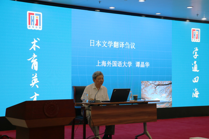 5月28日下午,由校办、教务处、学工部主办,外语学院承办的第71期“通海讲堂”在奉贤校区通海厅开讲。上海外国语大学原常务副校长、中国日本文学研究会会长、中国中日比较文学研究会副会长谭晶华教授应邀作了题为“日本文学翻译刍议”的专题讲座。外语学院院长赵宏、副院长张正军及开元官网80余名师生参加了讲座。讲座由张正军主持。