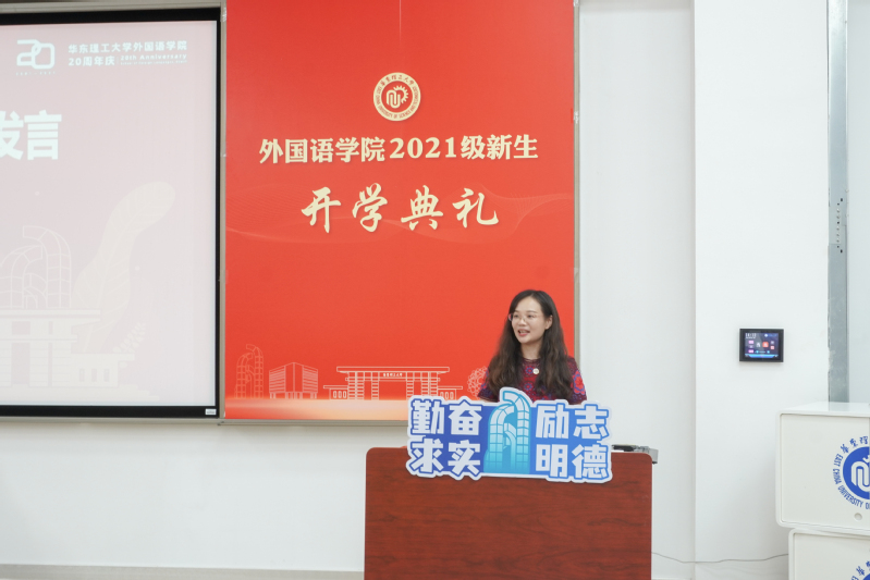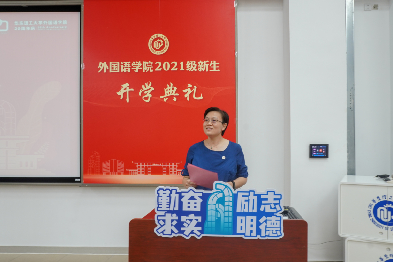 赵宏首先代表学院致辞。她回顾了学院建院20年的发展历程,对所有新生提出了4点希望:一是坚定理想信念,做具有人文情怀的前瞻者,成为有品行、有立场、有思想和有理想的人;二是培养国际视野,积极发挥中外交流的桥梁作用,为构建人类命运共同体作出贡献;三是增强核心竞争力,用扎实的知识和能力支撑远大的理想;四是协调学习与生活,德智体美劳全面发展。