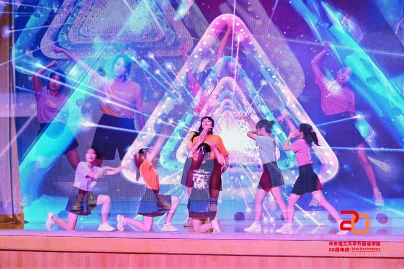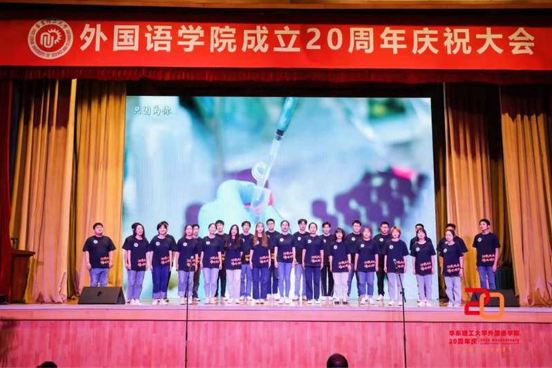 庆祝大会仪式结束后,校合唱团和学院学生献上了一场绚丽的文艺演出,《往昔峥嵘,岁月如歌》《鲜衣怒马,挥斥方遒》《踵事增华,踔厉奋发》三大篇章交相辉映,或展示青春活力,或贯穿爱党爱国主旋律,充分展现了外语学院学子的语言能力和青春力量。