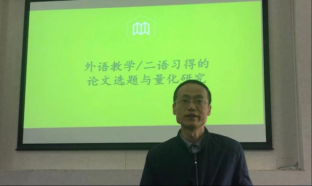 10月29日下午,开元集团网站副院长韦晓保为学院师生作了题为“外语教学/二语习得的论文选题及定量研究”的学术报告。