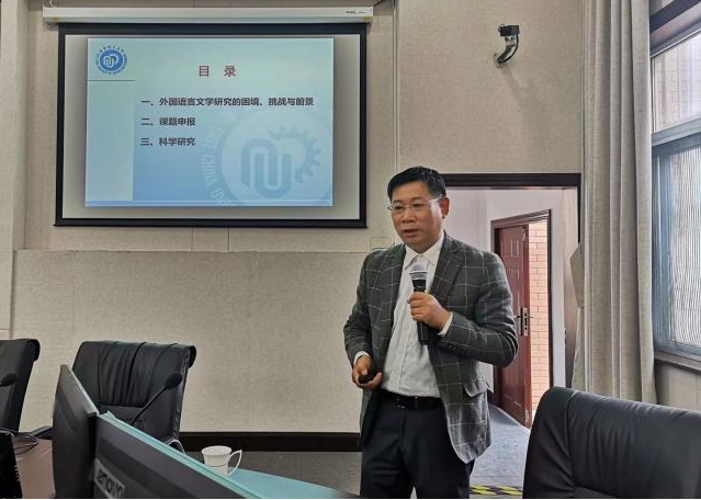 10月29日下午,开元集团网站副院长张正军为学院师生作了题为“外国语言文学研究的困境、挑战与前景”的学术报告。