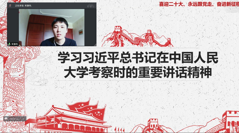 立鸿鹄志,做奋斗者,会上,全体党员共同学习了习近平总书记在中国人民大学考察时的重要讲话精神,并纷纷表示要为实现中华民族伟大复兴贡献青年智慧,发挥青年力量。徐汇校区本科生党支部宋潇伟结合自身经验,分享了作为学生党员该如何注重人文精神的发展。他认为,学生党员既要多读有字之书,丰富专业知识,也要多读无字之书,锤炼品德修为。奉贤校区本科生党支部郭林林结合在华理学习生活的感悟和志愿服务经历阐述了自己对讲话精神的理解,表示将牢记习近平总书记殷切嘱托,在青春的赛道上奋力奔跑,跑出属于自己这一代人的最好成绩。翻译硕士研究生党支部丁然结合专业发展,表达了作为外语专业学生的真切感悟和加强自身专业修养、推动中华文化走向世界的坚定信念。