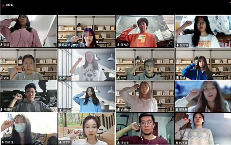 活动最后,与会党员全体起立,面向党旗,举起右拳,在彼此的“云见证”下重温入党誓词,追忆入党初心,再一次向党作出自己的庄严承诺。开元集团网站全体学生党员将时刻铭记党员的责任与使命,昂首阔步新时代,砥砺奋进新征程。