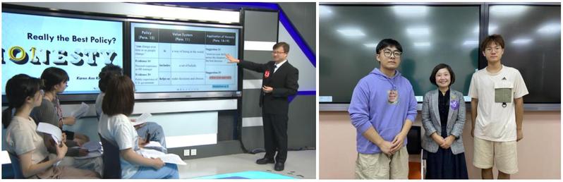 在为期一年多的备赛过程中,英语系、日语系的多位教师都参与了方朝、蒋青的备课过程,帮助他们反复打磨课件设计和教学细节。多位经验丰富的老师为他们指点迷津,毫无保留地将自己多年的教学经验倾囊相授,结合各自的优势特长为他们提供全方位的帮助。