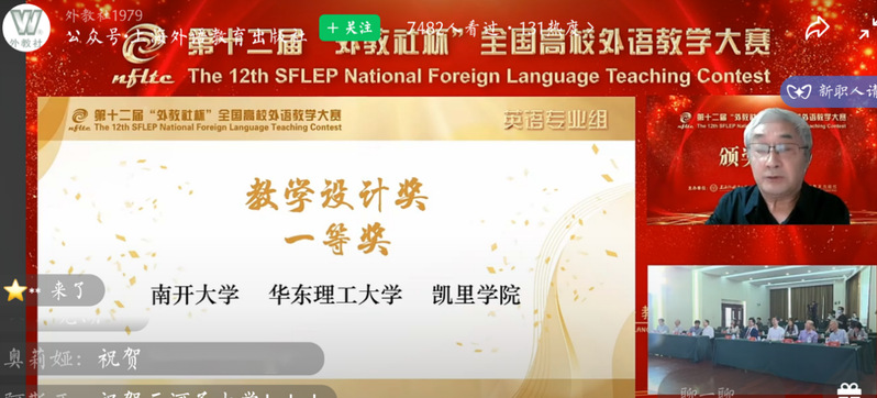 9月23日至25日,第十二届“外教社杯”全国高校外语教学大赛全国决赛、总决赛在线上举行。本次比赛采用选手在线授课、评委线上线下评审的形式展开,大赛在网络同步直播,吸引了近30万人次在线观看。