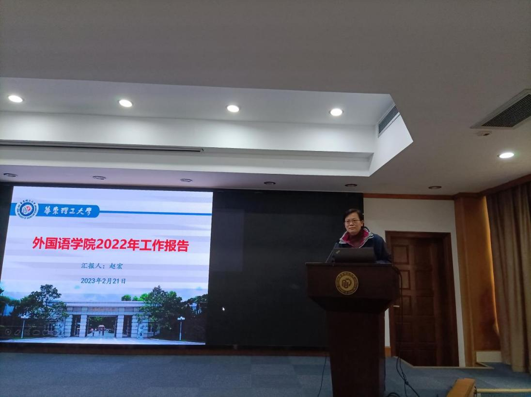 院长赵宏向大会作了行政及财务工作报告。她从党建工作、师资队伍建设、人才培养、学科及科研、学生工作等五个方面回顾了2022年学院开展的工作和取得的成绩,剖析了学院发展面临的机遇和挑战。
