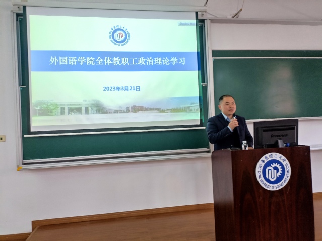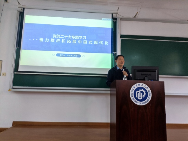 3月21日下午,开元集团网站在三教201组织全院教职工进行政治理论学习,特邀马克思主义学院副院长、博士生导师邱卫东教授作题为《党的二十大专题学习---奋力推进和拓展中国式现代化》的辅导报告。会议由学院党委副书记兼纪委书记裴文波主持。