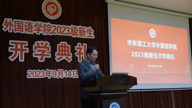 吴建伟作为教师代表发言。他旁征博引,先后用维特根斯坦、赵元任、萨特、苏格拉底的名言勉励新生,引导新生思考大学和人生的方向,并强调了语言学习、探索未知和融入集体的重要性,希望大家能以实际行动,为能拥有“学习、收获和向往”的美好人生而努力奋斗!