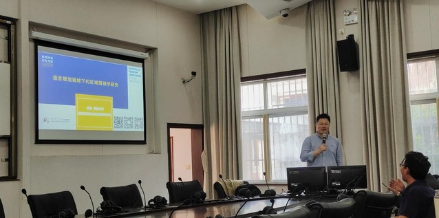 沈骑教授首先探究了语言与区域国别研究的内在关联,提出外语学科应注重自身学科优势和特长,建议考虑从语言出发,开展以语言规划与政策为问题导向的区域国别学研究,聚合外语学科优势,创立区域国别学研究的语言学路径,为深入推进区域国别学交叉学科的知识体系构建奠定基础。其次,沈骑教授深入阐述了区域国别学的研究方法及语言规划的发展历程,展示了该学科视域下的多样化选题。最后,沈骑教授分享了其团队取得的优秀成果,鼓励外语教师从区域国别视角方面切入研究。