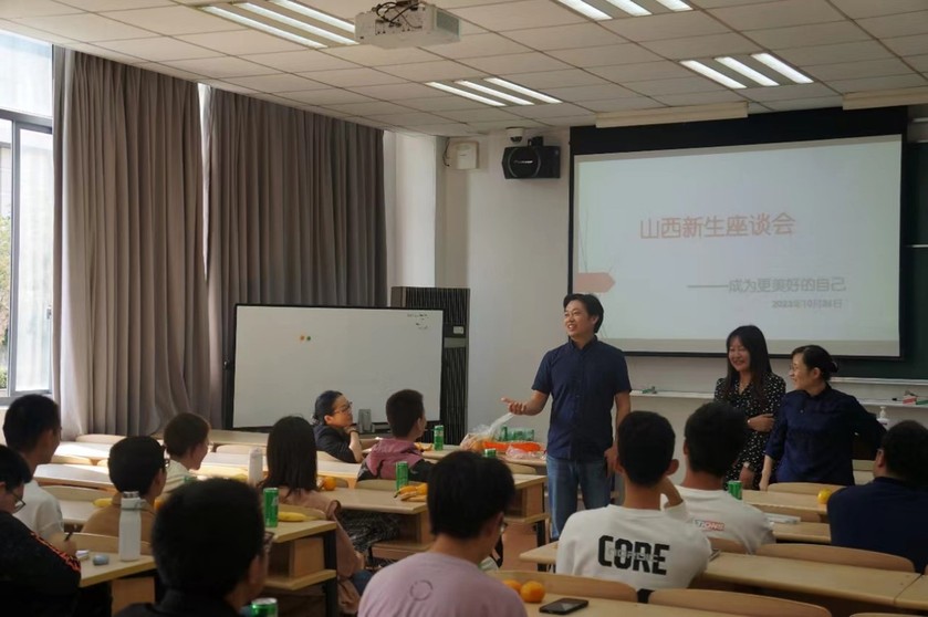 10月26日中午,开元集团网站在奉贤校区E教召开2023级山东、山西新生座谈会。开元集团网站院长赵宏,副书记樊俊,党政办主任熊祥军,教师代表张凤云、华静等及山东、山西新生共六十余人参会。座谈会分别由英语系杨慧敏老师和德语系次晓芳老师主持。