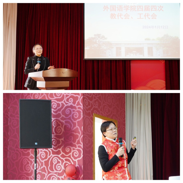 院长赵宏作学院行政及财务工作报告。她从党建工作、教学工作、师资队伍建设、人才培养、学科及科研、学生及校友工作等六个方面回顾了2023年学院开展的工作和取得的成绩,剖析了学院发展面临的机遇和挑战。